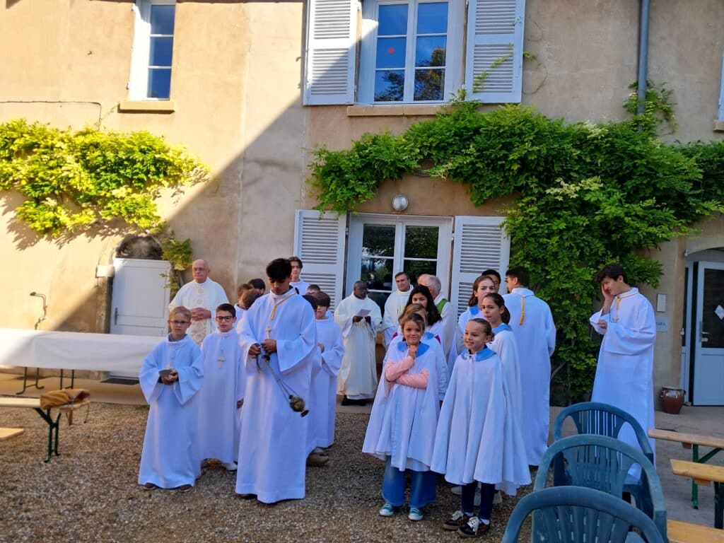 Autour du Père Cacaud, curé de l’ensemble paroissial , la messe fût concélébrée par le Père Régis Charre, le père Jean-Yves Leborgne, Père Philippe Moigniet, Père El Gear tous 4 prêtres pradosiens