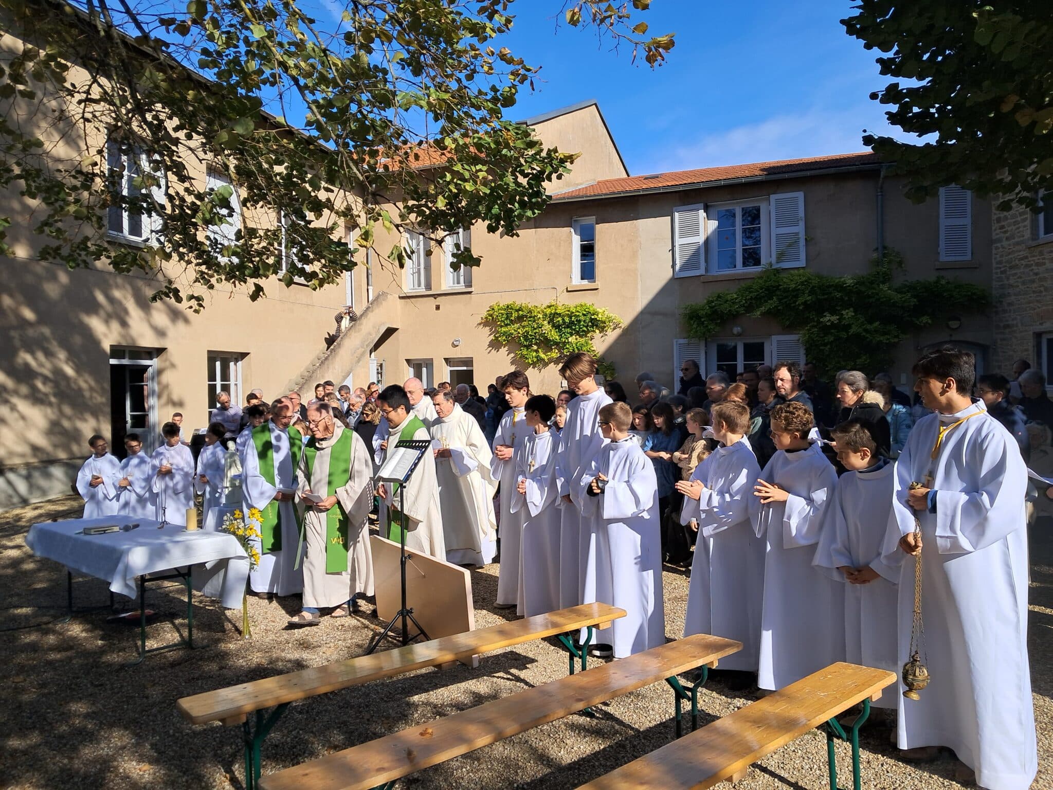 Ce dimanche 28 septembre sous la soleil, messe au Prado chez les sœurs pour la fête du Père Antoine Chevrier