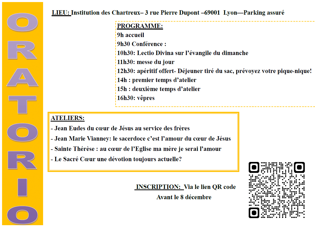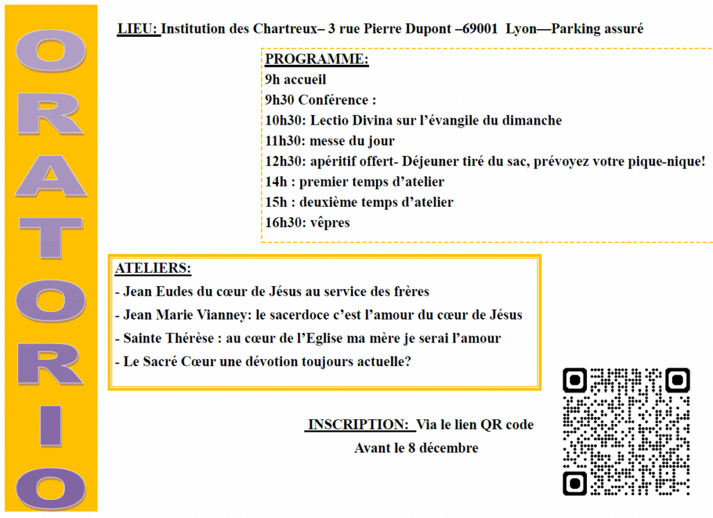 Samedi 13 décembre de 9h à 17h à l’institution des Chartreux . Inscription via le QR code ou le lien